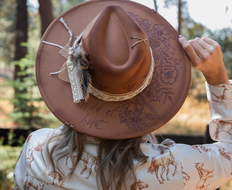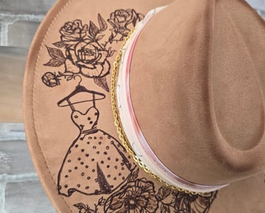 Dive into our gallery of past unique creations, faux felt and faux suede hats.